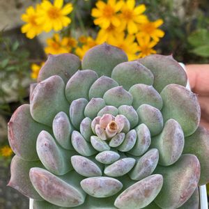 ELLY QUEEN 久しぶりに多肉見てたら💦 何か丸々、デブっちいのが居て 誰これ❓ と思って名前見たら、 自分がeriだから名前買いしたELLY QUEENだった😅 体型と言い、他人とは思えない💧 レモンマリーゴールドを添えて〜😆