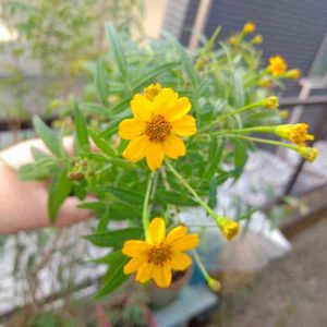 レモンマリーゴールド🍋 台風で倒れちゃったけど、 小さな花がたくさん咲いています🌼🌼🌼 レモンの香りはしません😁