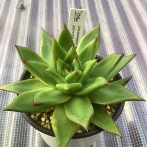たまには ツンツン系多肉さんも🪴 『アガボイデス エボニー交配』 葉の縁が赤黒くて カッコイイ品種です(*´꒳`*) 昨日はお天気が良かったので 久しぶりのお水やりでした🚿 元気に生長してくれています♪