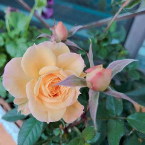 モナコ妃とブルーリボン🌹蕾をまたまたあげて来ました。咲いてくれるのかしら?🤔🤔心配な今日この頃💦咲かせても良いのかしら?これも悩み😰