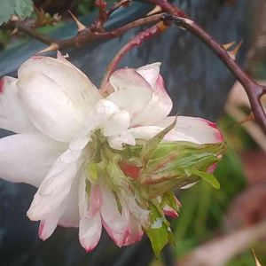 12月、休眠させるためにカットしたミニバラのつぼみちゃん、水挿しして明るい窓辺に置いていたら、1ヶ月かけて開花してくれました🌹 頑張ったね☺️