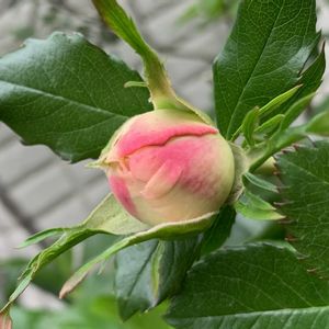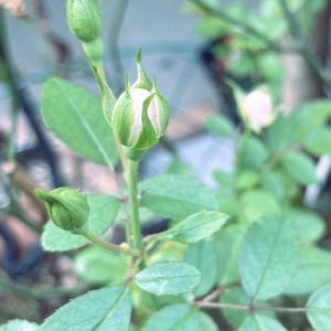 キモッコウバラの蕾発見❣️ とても大切なものをそっと手で持っているように見えます✨ 今年は思いっきり剪定したのでいつもほどたくさんは咲かない予定です。