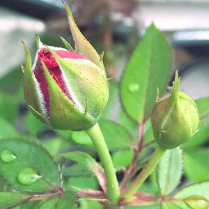 コルダーナさん、グラースさん 紅白蕾🌹 可愛いねあなたたち~☺️💕 咲いたら良いことありそう♪ ルンルンルン🎵