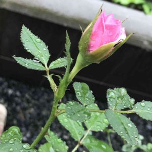 雨☔️の中、健気に蕾つけてます😊 2番花だからでしょうか、 蕾は綺麗だけど咲くと何だか病気?みたいになっちゃいます🤔