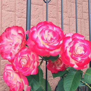 インドアローズ 室内でも咲くよ、と言われて買ってきたバラですが、 今年は屋外で咲いてくれました♡ 葉っぱがヤバイのは 雨晒しがいけないのかな〜