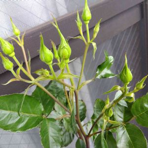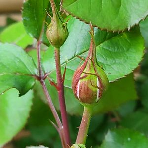 パープルタイガー 接木苗の新苗を先月お迎えしたばかり。 蕾らしきものが見えて来た˶( ºロº)˶꒳ᵒ꒳ᵎᵎᵎ 他のバラ達は、まだまだのご様子。 せっかく出て来た蕾だけど… 摘蕾しなければ( ・᷄ ~ ・᷅ ) 今の所、ふたつあるから ひとつは咲かせて見ようかな(˙-˙)?
