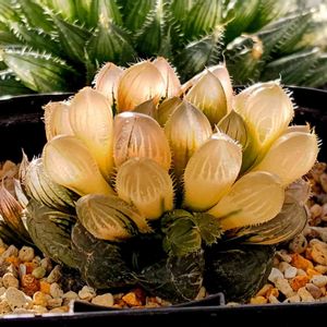 ●ススキノキ科 ツルボラン亜科 ●ハオルチア属 ●オブツーサ錦😻😻 太陽光がないと撮影不可能な綺麗なのが撮れました。😍😍 花みたい。😁🤭😁🤭