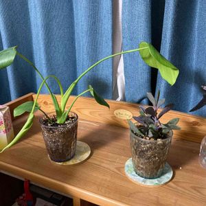 古株モンステラちゃんと 新入りのセネシオ クラッシシムス君です 家の中だと長持ちしません…