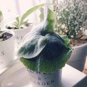 "グランデ" 色合いもヴィンテージだし、フワモフな見た目です♥ これは、貯水葉かな? 貯水葉からの胞子葉タイプの種類? まん丸苔玉にするか、ヘゴ仕立ての壁掛け苔玉にするか迷い中😰 コウモリラン初心者🔰なので、向かって前が前なのか、後ろなのか不明(^^; さあ、どうしよう😳
