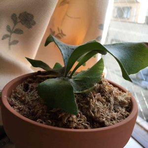 初めて買ったビカクシダの植え替えにまだ悩んでおります。 3寸ポットに入ったビカクシダと5号の素焼きの鉢があります。 鉢底石と水苔12リットルを今日買ってきました。 1、鉢底石を半分まで詰めて水苔を植えて固定する 2、もう一回り小さい素焼き鉢を買って1の案 3、苔玉にして素焼き鉢は石を敷き詰めてその上に飾る どれが一番初心者に向いているのでしょうか? 板付ハンギングは場所がないのと失敗が怖いです°°・(>_<)・°° 結論→2番 大きさにあった鉢で頑張ります! 苔玉は詳しい作り方が見つからないので、もう少しビカクシダとの付き合い方に慣れてから挑戦します。 お義父様に増えたら頂戴ねと…何年かかるかわからないけど、育てよう…