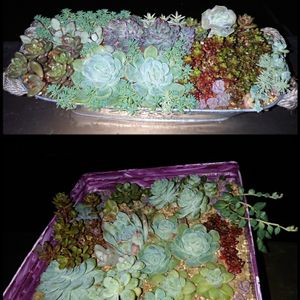 今日は夕方から多肉活動☺️ もう一時間で断念❄️ 冷たい風がビュービュー吹いて💧 鉢減らしの寄せ集め植え✨ 早くやらないと場所が~(*+_+) とか言いつつリメ缶も完成💧 鉢減らしたいのにリメ缶作ってると言う矛盾