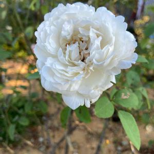 ERウィンチェスターキャシドラル💕 奥に見えているのは同じ株から咲いている先祖返りのメアリーローズです😅 二色咲きで得した感ありますが、気をつけないと全部戻ってしまうこともあるそう😥それは困る、白バラが大好きなんだもの
