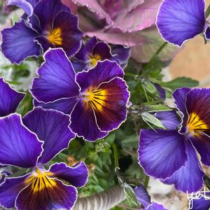 🥀ビオラ🥀フレアブルー🥀 昨日の夜、不織布掛け忘れたら 朝、花が凍って透明気味に、、 寒い一日です。 気をつけてお過ごし下さい。