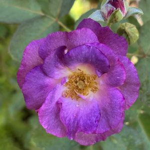 ブルーフォーユーさん💕 一番花も早かったブルーフォーユーさんは2番花がもう咲きました💜 一重のバラなので梅雨に入る前に咲いてしまい良かったです😊 今蕾がたくさん上がってきている子たちは梅雨の中2番花が咲くのですね😅大きな鉢の子は諦めるしかないかな🤔
