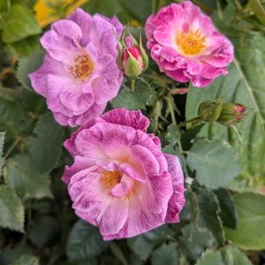 ブルーフォーユーさん💕 今朝ガク紫陽花さんを日陰にしてしまったブルーフォーユーさんの話をしましたが、その後庭に出ると先日2番花をガッツリ咲かせてくれたばかりなのに、もう次の準備をしていたので写真を撮りました🤳 横に広がって行き、シュートも出して何故か絶好調のようです😊 ②昨年秋にラ.パリジェンヌさんと間違えてお嫁に来てくれた子がこの春初めて咲きました🌹恐らくオデュッセイアではないかということです。確かに花びらがふりふりです😊でも色がピンクがかった赤🩷 まだまだとても小さいのに他に2つ蕾があったので、心を鬼にしてハサミでガッツリ蕾を切りました✂️もっと咲かせなくて済むようにチェックしてあげなきゃです😰 ③こちらも昨年秋にお嫁に来てくれたいおりちゃん この子は春にもお花を見たので、花友さんの助言も私自身の考えも秋までは咲かせないようにして株を大きくするつもりでした🤔 なのにこちらも咲いてしまいびっくりしました‼️ 咲いていることに驚き、次にその色の可愛さにも驚きました🫢 まだいおりちゃんの可愛い色を見慣れていないようです🥰✨ ④レイニーブルーさんもポツポツ咲いてくれています ポツポツで2番花と言えるほどの数ではありません😂 何だか今はそんな感じのお花が多いです😓 送ってくださった方から 和バラ友禅ではないか、との連絡をいただきました🌹