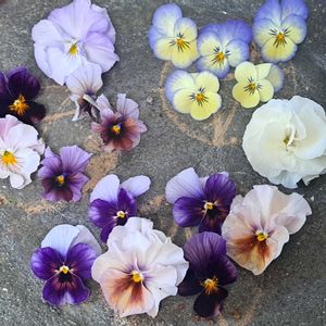 パンジーとビオラ シックな色合いが好きだけど 門前の花壇には右上のほんわか色を 白い八重咲きのトルコキキョウみたいなのも気に入ってます CAINZで98円でした、、、💕