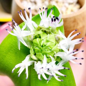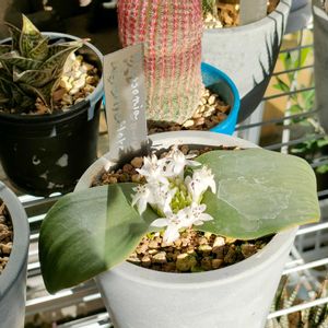 マッソニア ジャスミニフローラ開花🤍 花はシンナーの匂い😷 オキザリスは日差しが無くずっと蕾のままですが、マッソニアは関係ないようです。