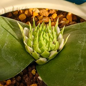 マッソニア ジャスミニフローラ 良い感じに葉が展開してきました。 このまま無事に成長してくれれば羽根に見えるかな? 頭に生えてるようにも見える?🤣