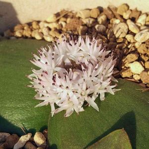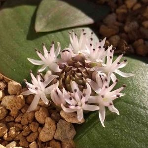 マッソニア・ジャスミニフローラ Massonia jasminiflora 去年マイナス6℃平気だったから、ベランダに放置していますが、かなり開花が進んできました♪