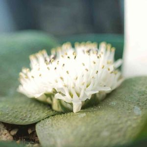 愛智園の『ジャスミニフローラ』。 このジャスミニフローラさんはマッソニア属の球根多肉さんになります(*´ω`*) ジャスミニフローラさんの名前は「ジャスミンの香りがするお花」という意味で、開花するとなんとも癒される匂いがします(。・ω・。) そしてジャスミニフローラさんは南アフリカの東ケープ地方に広く自生しているため、変異が多い子でもあります。 またこのジャスミニフローラさんは他のマッソニアさん達と比べて葉の色が明るく、個人的にはここも可愛いところだなと感じます(๑˃̵ᴗ˂̵) 育て方は前回のエキナータさん、前々回のプスツラータさんと全く同じようにしていただければ一年中健康に過ごしてくれます(*´꒳`*) 前回のエキナータさんのところでも述べたのですが、プスツラータさん以外のマッソニアさんも魅力的な子が沢山いてその違いを知ることも楽しい時間だと思います(*^^*) そしてマッソニア属の子はその中でも更に地域によっての変異種がいたり、今も研究がされていたりして新しい発見が期待されている子達でもあります! そんなまだ見つかっていない彼らの謎について考えたり、調べたり出来るのもマッソニア属の子達と暮らす中での醍醐味だと感じます(*´꒳`*) そしてマッソニアさんからそのような何かを探求する大切さを教えられたりもするかもしれないと感じます。 なのでもしこのジャスミニフローラさんや他のマッソニアさんを見かけましたら是非触れ合っていただきたいです(๑˃̵ᴗ˂̵) そして沢山心の中で話しかけてあげてください。君はどこから来たのか?君はなんでこのような姿をしてるのか? その時もしも答えが返ってくるような、心が通じ合う子に出会えましたら是非家族の一員に迎え入れていただけたらなと思います(*´꒳`*)