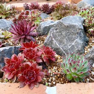 🍀ミズリーローズ🍀 親株大っきくなったなぁ〜😊 子株は丁度いいサイズに育ってきました🌿 地植えして初の夏越え😅 みんな頑張ってくれぇ〜い😆 Sempervivum Mizry Rose