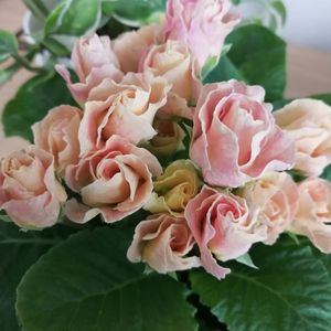 💛💗2週間前に迎えたバラ咲きプリムラ とてもガーリーでかわいいです 初めて育てるのですが、フリージア?のような?香りがするんですね♪深呼吸しちゃいますƪ(˘⌣˘)ʃ