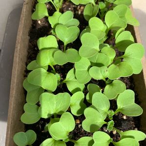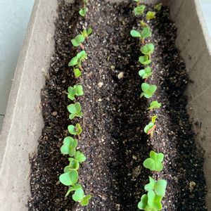 ラディッシュ5日目② ぎゅっとなってたので、間引きして、 徒長ぎみ?もちょっと埋めました。笑 さてどうなるでしょうか。🌱