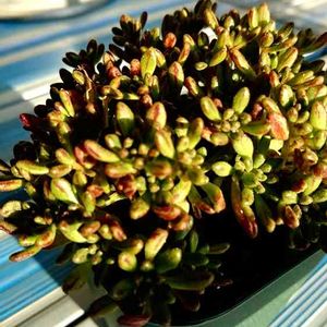 おはようございます(*^▽^*) 最近購入した多肉その2です 『アエオニウム 小人祭』です!! 本📚️やホームセンターでも見たことがなく、珍しいと思いすぐにカートに入れてしまいました😋 個人的で勝手なイメージですが、アエオニウム属は樹木のような風貌や大型の多肉が多いと思い込んでいたので驚きました! 全体的な印象からは、セダム属やグラプトペダルム属にもありそうです 深緑色の葉に赤褐色の斑が素敵です♪ まるまるした葉がかわいらしいです(*´▽`)♡
