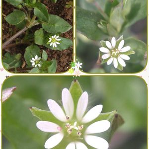 ハコベ❀🥰❀ ☆星のガクに♡の花びら 庭先に すずめ達が ぴよぴよぴよ🐤🐤🐤 蕾かな 葉かな 首を傾げながら 啄んで 小躍りしていました 美味しいのかな 喜んでいるのかな 2025.3-19