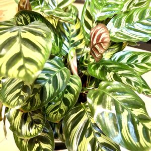 カラテアマコヤナ😊新芽が出て来てまだまだ葉っぱ☘️が増えそうです😊80枚を超えました😊来年は7号鉢に鉢増しかなぁ😊