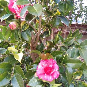 庭のさざんかです。花びらがたくさんで、満ち満ち、重い重い。長く咲くのでお庭を彩ってくれてます。
