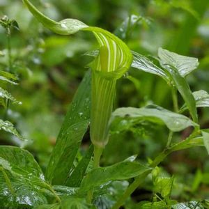 🎶坊や良い子だねんねしな〜🎶 オイラは、里山に住むサトイモ科ハンゲ属のカラスノビシャクだい💕 人間には使えない小さな柄杓とのことで、烏の柄杓と名付けられたそうな。 烏だって使えねえやな(;´д`)トホホ…。 オイラたちは、ほとんど土の中で過ごして、夏前に姿を見せて直ぐに枯れる。 『キモカワ〜。』とか『むかごで増える厄介者』とか『ミーアキャットみたい。』とか『むかごを集めて漢方薬で売るんじゃ』とか好き勝手に言ってやがる。 花言葉は«心落ち着けて» 勝手なもんじゃろ? ここでは、オイラはソーシャルディスタンス守ってる。 密になると、欲と道連れの女主から引っこ抜かれるからなぁ💕 ( `・∀・´)ノヨロシク哀愁