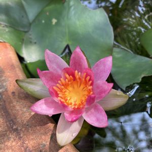 熱帯睡蓮 ①「トロピックサンセット」& ②「イスラモラダ」 7月25日am8:32 ✧p📷qω•,,´)パシャ✧ ①の写メ 今年の初開花のトロピックサンセット 可愛い熱帯睡蓮です。 此方も、イスラモラダと同じ様に、ムカゴ種なんですけど、ムカゴが着いたのを見た事がないです。 ムカゴ種というのは、葉っぱの付け根にムカゴ出来て、それから子株が出来ていく種類なんです。 トロピックサンセットは、2、3個づつの開花が見られるとネットで出ているように、右上の蕾もトロピックサンセットの蕾のようですね。 ピンク色をしています。 ②の写メ 此方は、熱帯睡蓮の「イスラモラダ」です。 此方もムカゴ種で、ムカゴ がよく出来て沢山増えます。 困るほどね😰