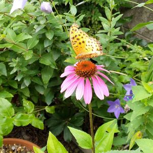 こんにちは☔ ワイヤープランツ&シュガーパイン〜🌿こんな感じです🌿〜 …枠のなかのお花は、今日のクレマチス一輪です💎 昨日のナヨッ、シナ…姿が、こんなにしっかりしました(((o(*゚▽゚*)o)))