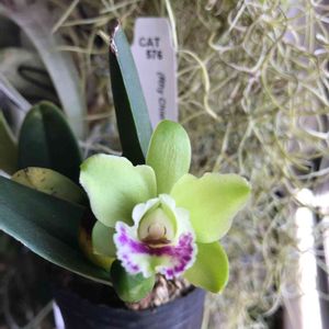 世界らん展で購入したミニミニカトレアが咲きました(^^) 花の直径4センチ