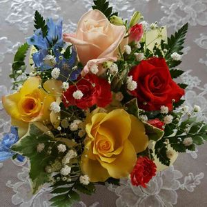 こんにちは😄 今日は、穏やかな日です 薔薇、カスミソウ、デルファニュムなどなど、とてもお得な お花たちですが、綺麗~😍