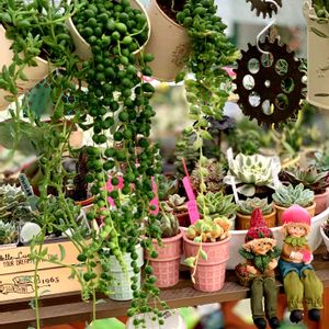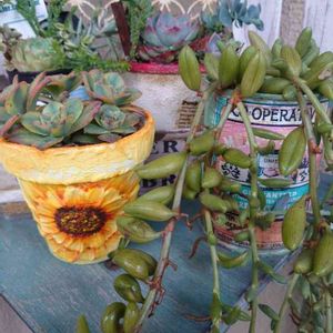 グリーンネックレスとアーモンドネックレス ドンドンのびてきました❗️ 多肉ちゃんたちすごく元気に育ってきてます( ^ω^ )