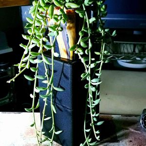 多肉植物 「アーモンドネックレス」 日曜日は暑い休みでした💦 朝早くに水遣りを済まして、夕方には色々と鉢植えなどをして休みを終えたけど、30数℃の気温なんてもう要らないよね。 植え込みしたのは後日投稿しますからね。 今日は、ずっと前から居たアーモンドネックレスがだいぶ伸びてきたので、お披露目です。 あまり手入れも何もしていないけどね。😅 鉢の口から、ちょうど1メートル有りました。 物置の向かい側のテーブルに乗せているのですが、最近床に届いたので長さを測ってみました。 良く覚えてないけど、2年くらい前からあったと思います。 良く育ちました。💮💯