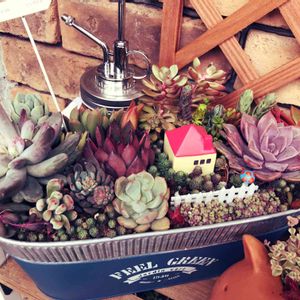 100円ショップ、300円ショップの雑貨で多肉過ぎる箱庭完成🌵