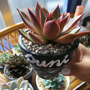 こんにちわ✧٩(ˊωˋ*)و✧ 御協力お願いしますm(*_ _)m プレ企画や交換便等の私のリメイク 🏷ぷにちゃんリメ缶&リメ鉢 つけてくれると嬉しいです!! 夏に被爆した子達😭 外葉はもうダメだけど、成長点からかっこいい爪と同時に生き生きとしてきたよ♡♡ ↑アガボイデスルブラ ←桃太郎 →チワワエンシス 紅葉もしていて良いね(*Ü*)