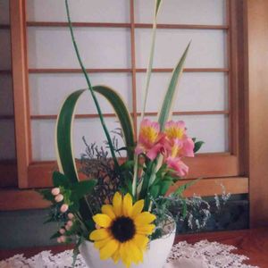 先日 買って来た お花💐 で、取り敢えず 生けて見ました😅 下手でも、花が有るって だけで何か満足 している私です🤗