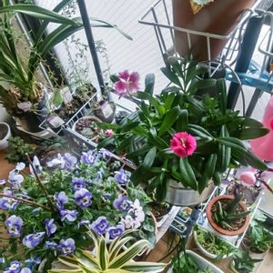 テラスから引っ越してきたGreenたち🌱多肉さん見えない笑。 ビオラは百日紅鉢に盛ってます。 ガーデンシクラメンが安くなってきました。ぐっと堪えて(¥300→100)ひとつ迎えたのビオラ横に🎵