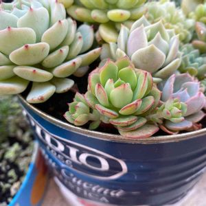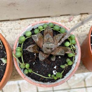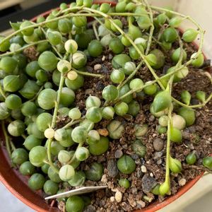 斑入りとそうじゃないの分けて臨時の豆缶へ。なんかグリーンネックレスも豆っぽいし、ちょうどよかった😆斑入りは元いたプラ鉢にも。ハオルチアの鉢にも置いて置きました。…増えますように🙇🏻♀️