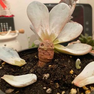 葉挿しから育ってすごい小さく可愛いこの子…やっと根が出て(ここまで根なしで育った)これからどんどん大きくなるかなー?