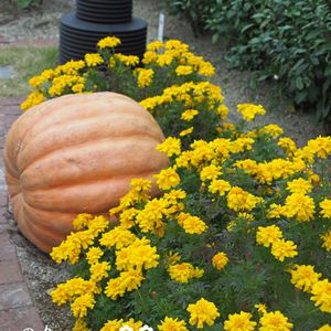 おはようございます。 GSや身近なところでみる、お花たち。 コロナなどで外出できない時 ココロを癒やしてくれ、ホッとします。 天空の農園で撮った デッカイかぼちゃとマリーゴールドです。