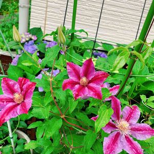 クレマチスポリィッシュスピリットの花が増えて来ました😁 ニヤニヤが止まりません(笑) あと3種類いっぱい咲いてくれー