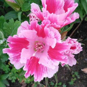 おはようございます☀ 朝少しの晴れ間にpic📸✨ ゴデチャ🌸昨年の花から種を取り☝️ 今年蒔いて見ました🤗 🌸🌸やっと咲き始めました٩(๑❛ᴗ❛๑)۶ もう梅雨に入ってしまったけど😱雨に負けない様に頑張ってたくさん咲いて欲しいです😆p(^_^)q