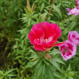 真っ赤なゴデチャ🌿✨ 咲きました🤗雨の中一層鮮やか😍