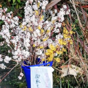 おはようございます🌸💐 散歩の途中に🌸💐自由に御取りくださいだって😅 桜と万作の切り花がありました😅 何桜かな❓😅🌸