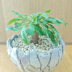 ユーフォルビア スパンリンギー (フィッシュボーン) 実生の小さい子を先日お迎えしました! 早速お気に入りの鉢へ。 先輩スパンリンギーみたいに大きく育ってほしいですね😄
